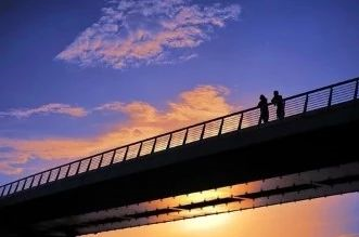 被厚厚的绿植包裹着的桥墩和呼啸而过的洒水车