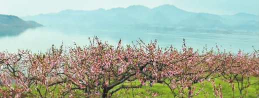 3月29日清晨,洪江市托口镇三里坪村,盛开的桃花把清澈的清江湖装扮得如诗如画。清江湖国家湿地公园以托口水电站库区为主体,是湘西南最大的人工湖。10年来,全镇3万多名移民在湖区两岸积极开垦山地、荒坡发展特色水果种植,如今,5000亩杨梅、1000亩金秋梨和1000亩黄桃等水果产业已相继产生效益,成为广大移民发展经济的支柱产业。