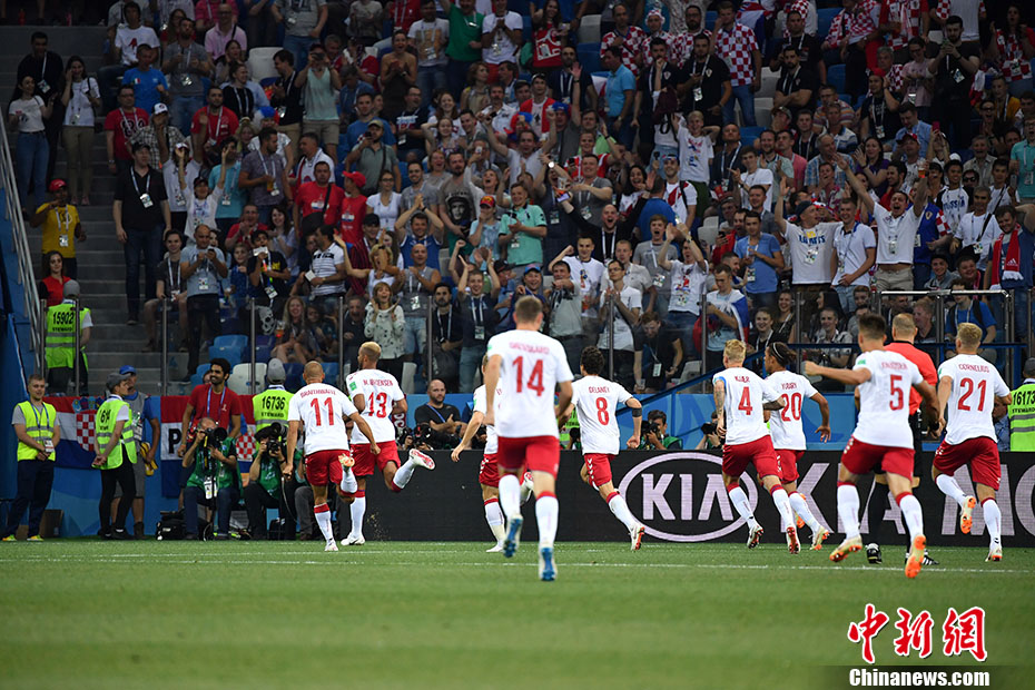 丹麦队庆祝进球。 中新社记者 毛建军 摄