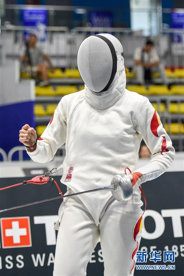 ↑7月19日,中国选手林声在比赛中庆祝。她在女子重剑个人资格赛中以15比8战胜加拿大选手马琳卡,晋级正赛64强。 当日,2018世界击剑锦标赛在江苏省无锡市新体育中心体育馆开赛,本次赛事共有来自108个国家和地区的运动员争夺三个项目的男女个人和团体冠军。 新华社记者李博摄
