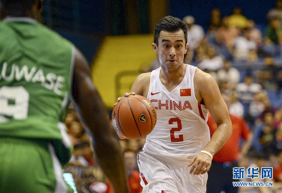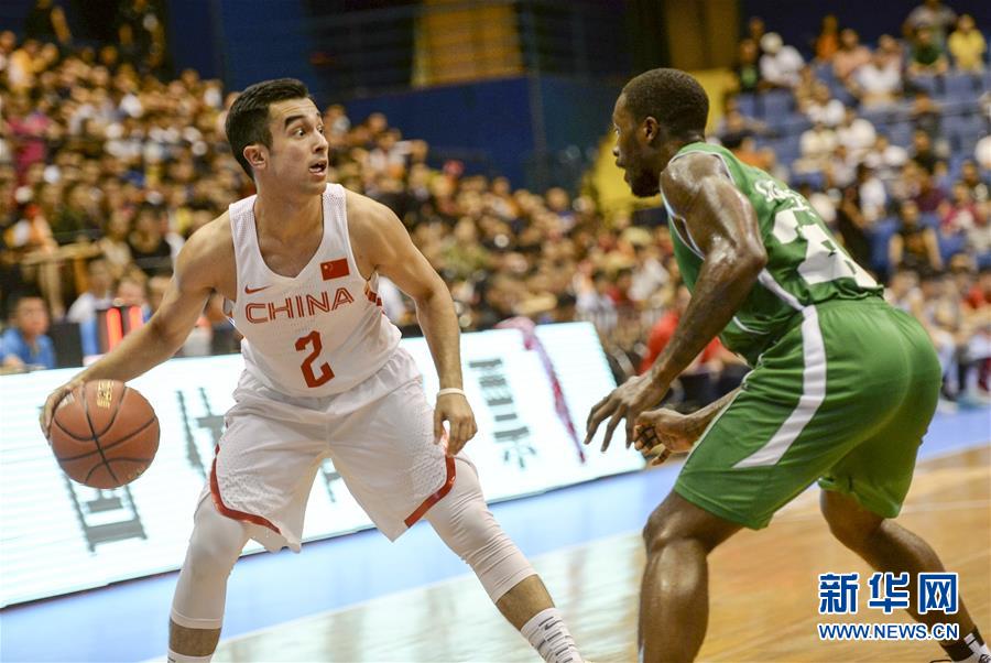 ↑ 7月24日,中国队球员阿尔斯兰(左)在比赛中控球。 当日,在西安举行的2018西安国际男篮冠军赛揭幕战中,中国国奥队以85比80战胜尼日利亚队。 新华社记者李一博摄
