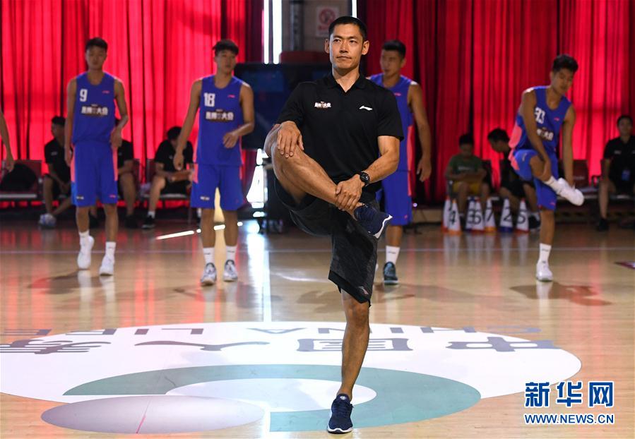 ↑7月26日,选秀训练营教练张庆鹏带领选秀球员训练。 新华社记者张晨霖摄