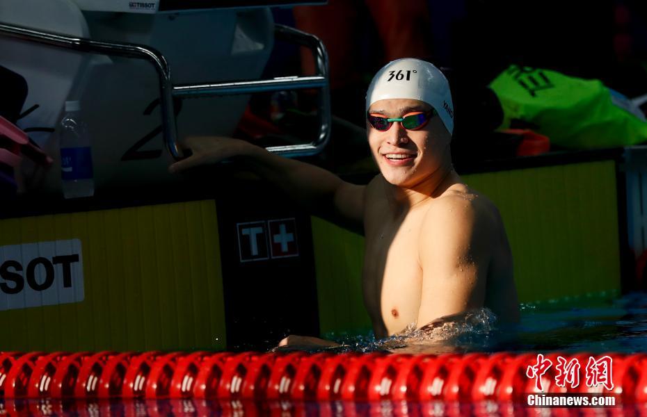 孙杨进行赛前训练。 中新社记者 杜洋 摄
