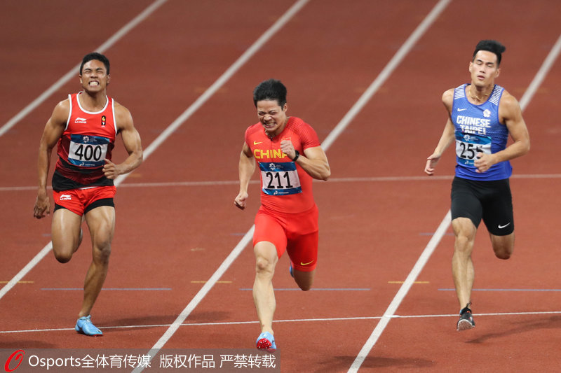 田径男子100米决赛 苏炳添9秒92强势夺冠