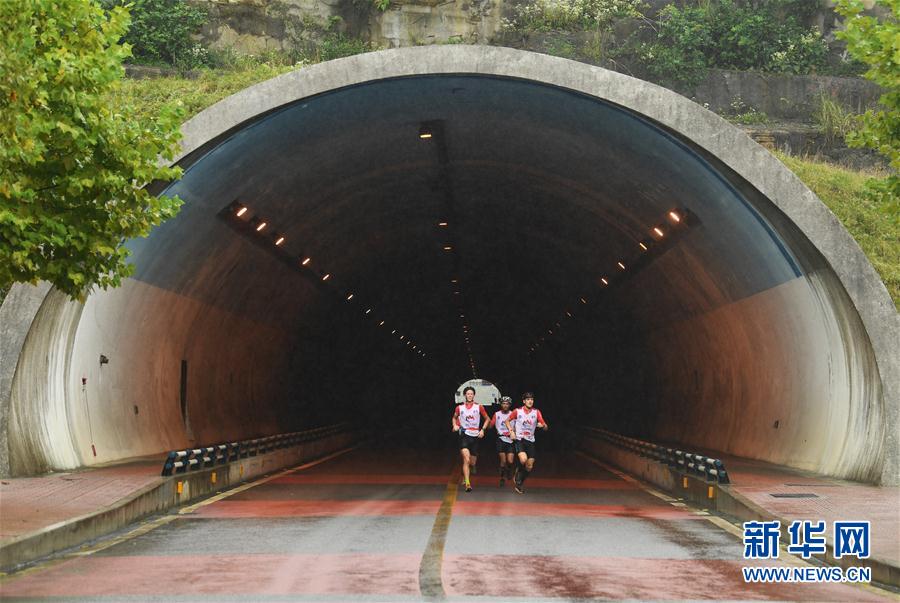 9月17日,探路者队选手在越野跑项目比赛中。 当日,2018中国武隆国际山地户外运动公开赛在重庆市武隆区开赛。本届赛事包含越野跑、背高架、山地车、皮划艇、单绳上升、公开水域游泳等比赛项目。 新华社记者王全超摄