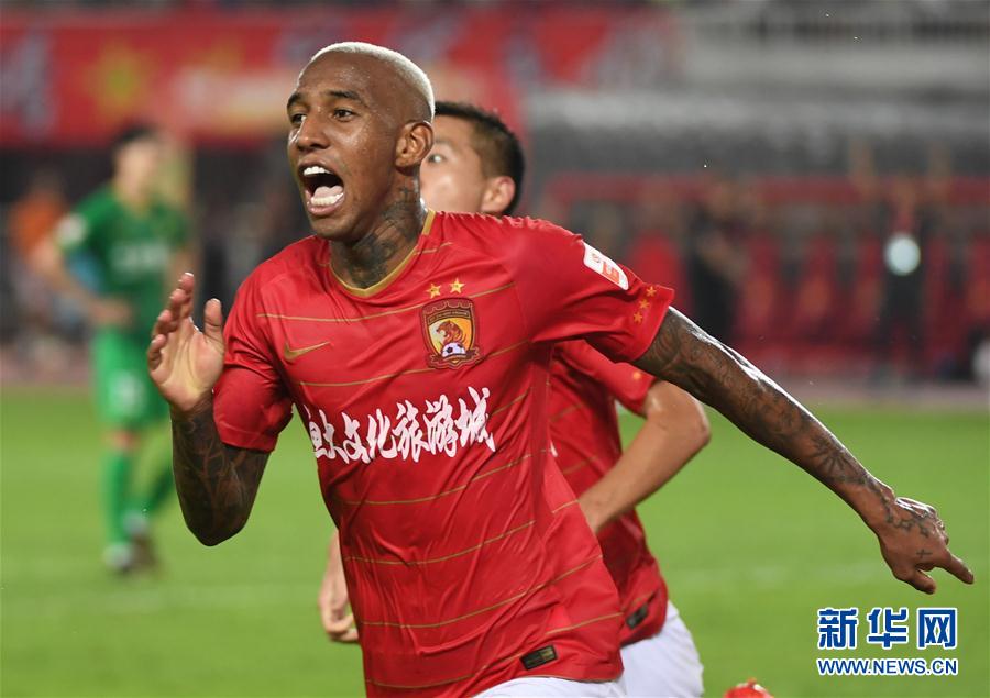 图为9月14日,广州恒大淘宝队球员塔利斯卡庆祝进球。 新华社记者邓华摄