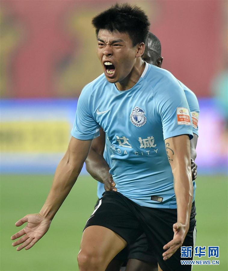 图为9月14日,大连一方队球员李帅在比赛中庆祝进球。 新华社记者岳月伟摄