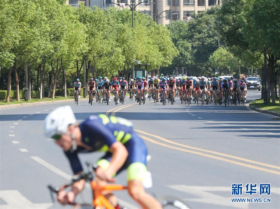 9月19日,选手在比赛中骑行。当日,2018第九届环鄱阳湖国际自行车大赛抚州梦湖站的比赛在江西省抚州市举行。 新华社记者潘思危摄