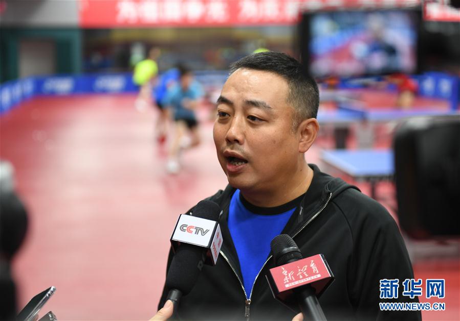 ↑9月27日,刘国梁接受媒体采访。新华社记者张晨霖摄