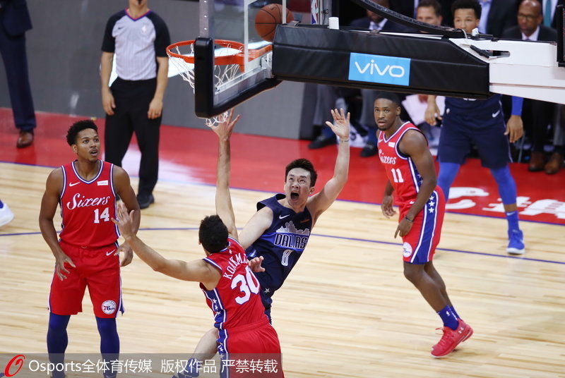 人民网北京10月9日电(郝帅)昨晚,2018 NBA中国赛深圳站打响,独行侠以115-112战胜76人。丁彦雨航出战8分33秒,2投0中,利用罚球得到1分。