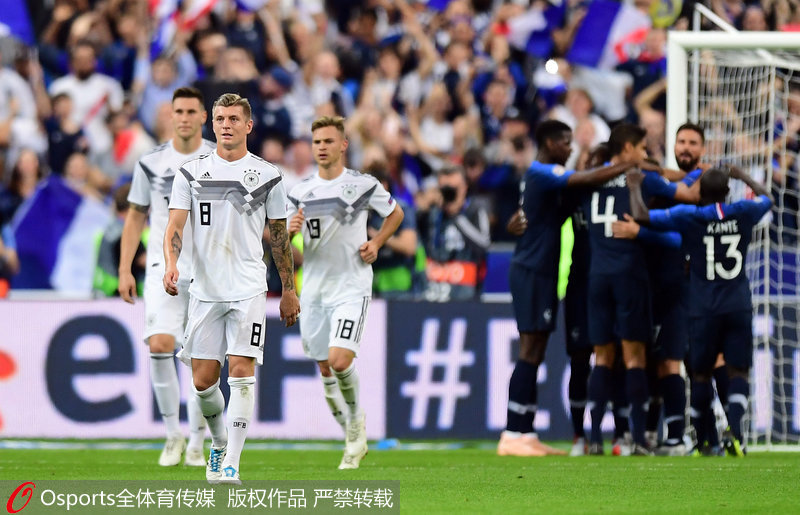 人民网北京10月17日电 北京时间今天凌晨02:45,国家联赛A1组一场焦点战在法兰西球场展开争夺,法国主场2比1力克德国,克罗斯进球,格列兹曼梅开二度反超。法国7分领跑,德国3战仅1分垫底。