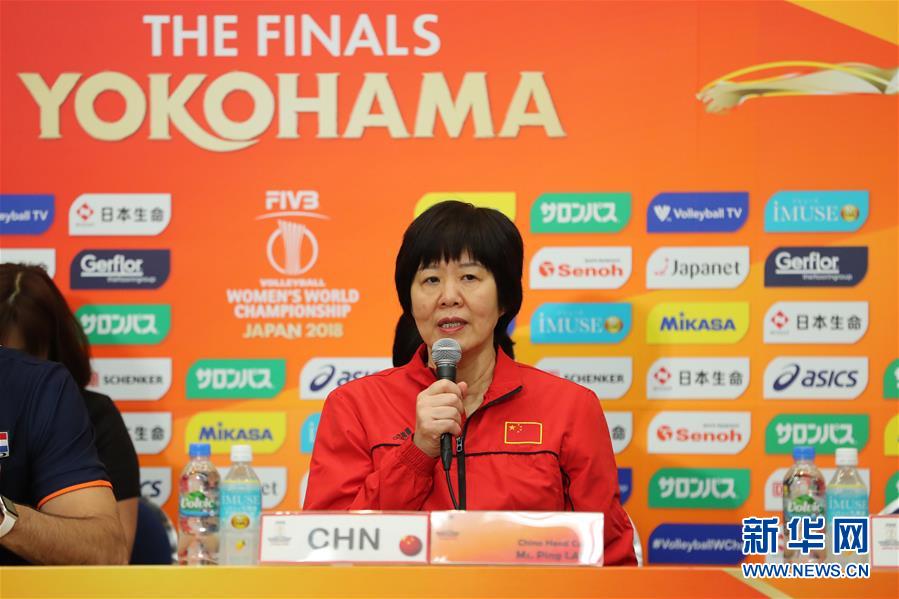 10月18日,中国女排主教练郎平在赛前新闻发布会上答记者问。 新华社记者杜潇逸摄