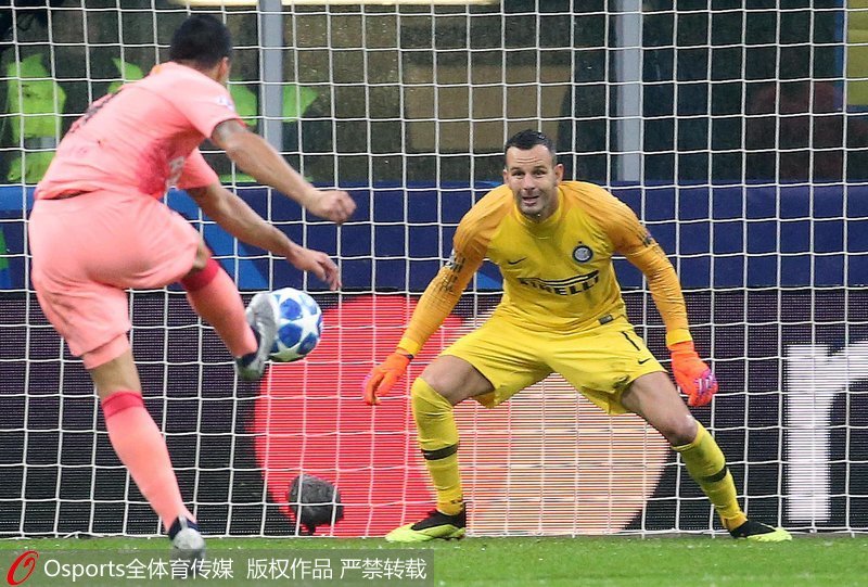 第42分钟,库蒂尼奥左侧内切射门被封堵,苏亚雷斯禁区里得球再射,还是被汉达诺维奇化解。上半场结束,巴萨和国米0-0战平。