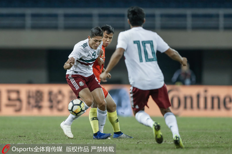 开场第5分钟,墨西哥先拔头筹!卡瑞欧左路带球传中,造成中国队禁区内一片混乱,拉拉倒地扫射被库迪热提扑出,随后严鼎皓解围出现失误,纳瓦罗门前补射将球打进!墨西哥1-0领先!