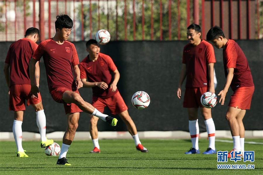 ↑1月3日,中国国家男子足球队球员在训练中。新华社发(马哈茂德·哈立德摄)