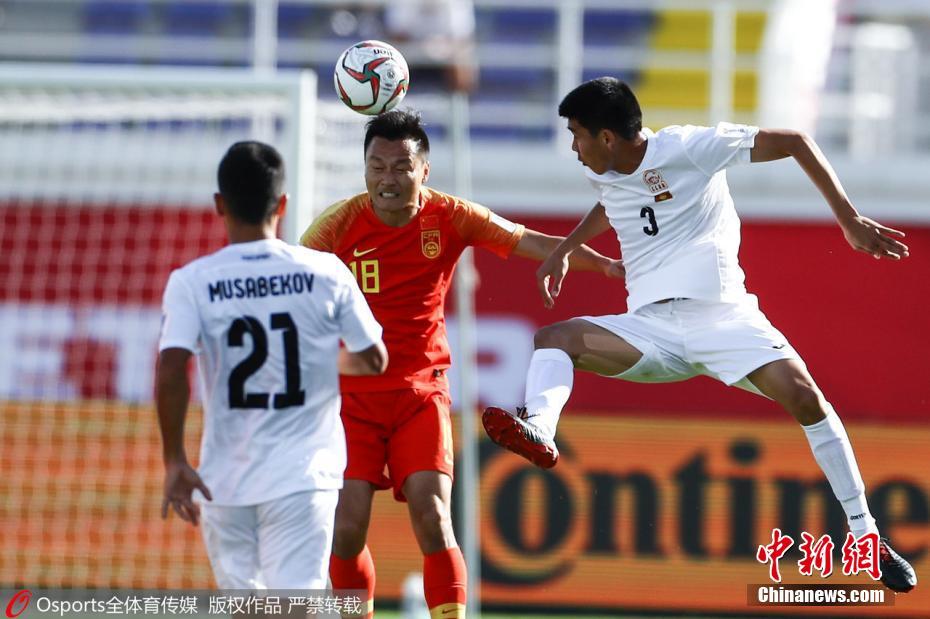 北京时间1月7日晚,2019阿联酋亚洲杯C组展开首场较量。中国男足在被对手先进一球的情况下,下半场收获吉尔吉斯斯坦门将马提亚什的乌龙大礼,最终凭借于大宝单刀赴会,冷静推射破门,国足2:1逆转对手,连续四次收获亚洲杯开门红。图为中国队郜林争抢头球。图片来源:Osports全体育图片社