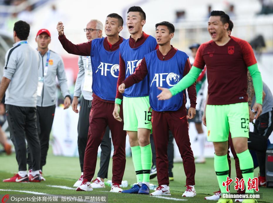 北京时间1月7日晚,2019阿联酋亚洲杯C组展开首场较量。中国男足在被对手先进一球的情况下,下半场收获吉尔吉斯斯坦门将马提亚什的乌龙大礼,最终凭借于大宝单刀赴会,冷静推射破门,国足2:1逆转对手,连续四次收获亚洲杯开门红。图为中国队进球替补席起身庆祝。图片来源:Osports全体育图片社