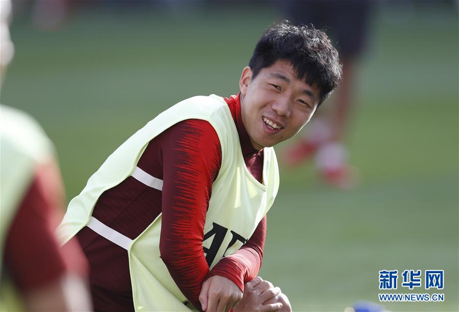 1月10日,中国队球员金敬道在训练中。 当日,中国男子足球国家队在阿联酋阿布扎比进行场地适应训练,备战11日与菲律宾队进行的2019年亚洲杯足球赛C组比赛。 新华社记者丁旭摄