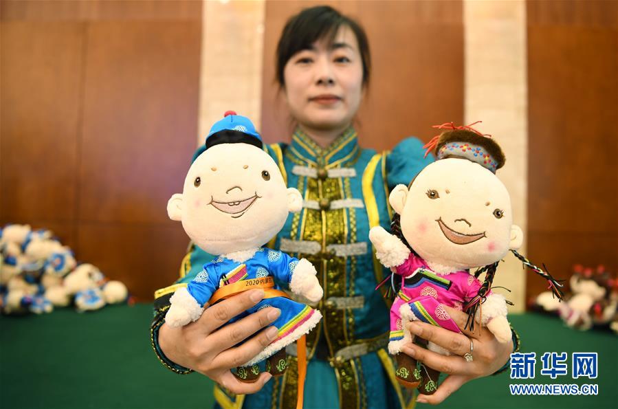 2月16日,工作人员展示“十四冬”吉祥物。 当日,第14届全国冬季运动会倒计时一周年新闻发布会在内蒙古自治区呼伦贝尔市举行。 新华社记者王建威摄