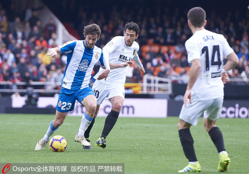 人民网北京2月18日电 北京时间2月17日23:15(西班牙当地时间16:15),2018/19赛季西甲第24轮一场焦点战在梅斯塔尼亚球场展开争夺,西班牙人客场对阵瓦伦西亚队。武磊首次首发出场72分钟,他也成为西甲首发的第一位中国球员。第50分钟武磊头球攻门稍稍高出,最终西班牙人0-0战平对手。