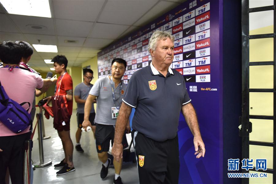 3月22日,中国队主教练希丁克(右)赛后经过混合采访区。 当日,在马来西亚沙阿兰体育场举行的2020年U23亚锦赛预选赛暨东京奥运会第一阶段预选赛东亚区J组比赛中,中国国奥队以5比0击败老挝队。 新华社发(张纹综摄)