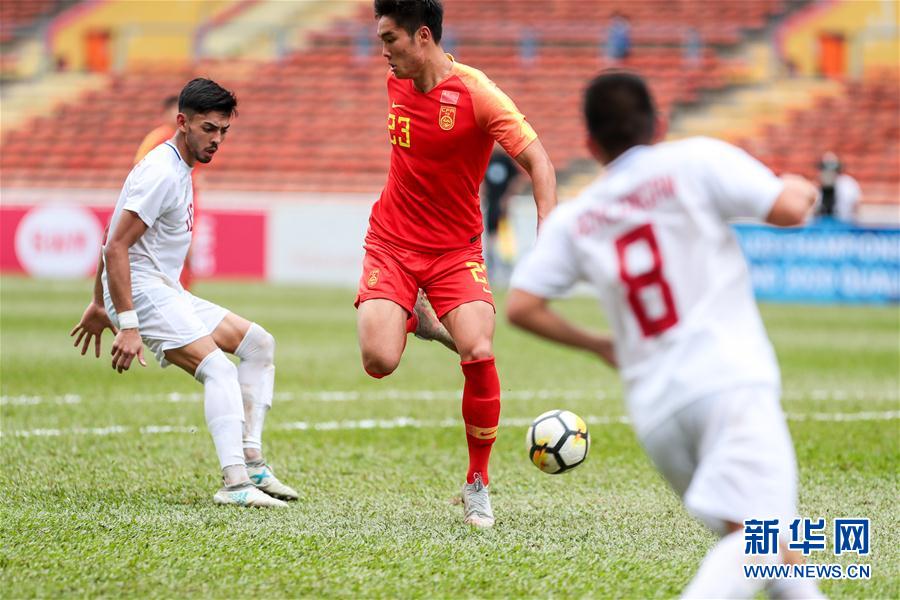 3月24日,中国国奥队球员单欢欢(中)在比赛中后脚跟传球。 当日,在马来西亚沙阿兰体育场举行的2020年U23亚锦赛预选赛暨东京奥运会第一阶段预选赛东亚区J组第二轮比赛中,中国国奥队以8比0战胜菲律宾队。 新华社记者朱炜摄