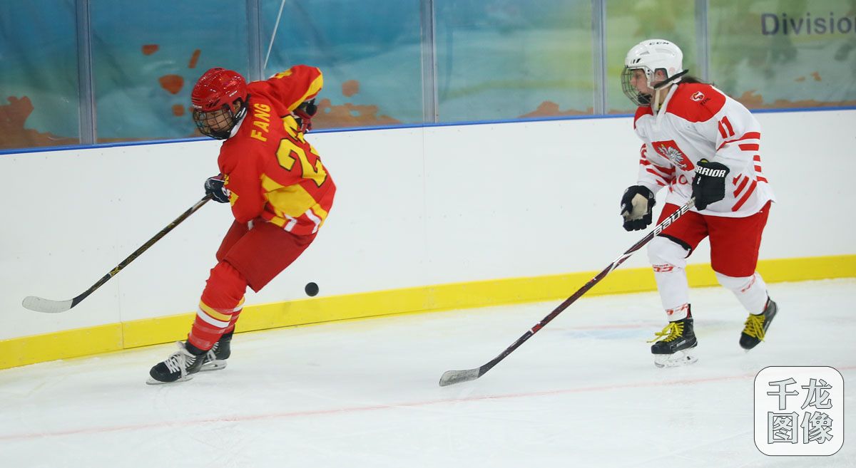 2019年国际冰联女子冰球世界锦标赛甲级B组比赛开赛之际,4月3日,中国女子冰球队和波兰女子冰球队在首钢冰球馆进行了一场友谊赛,中国队凭借第一局管莹莹的进球,以1-0小胜对手。图为比赛精彩瞬间。千龙网记者 戚连民摄
