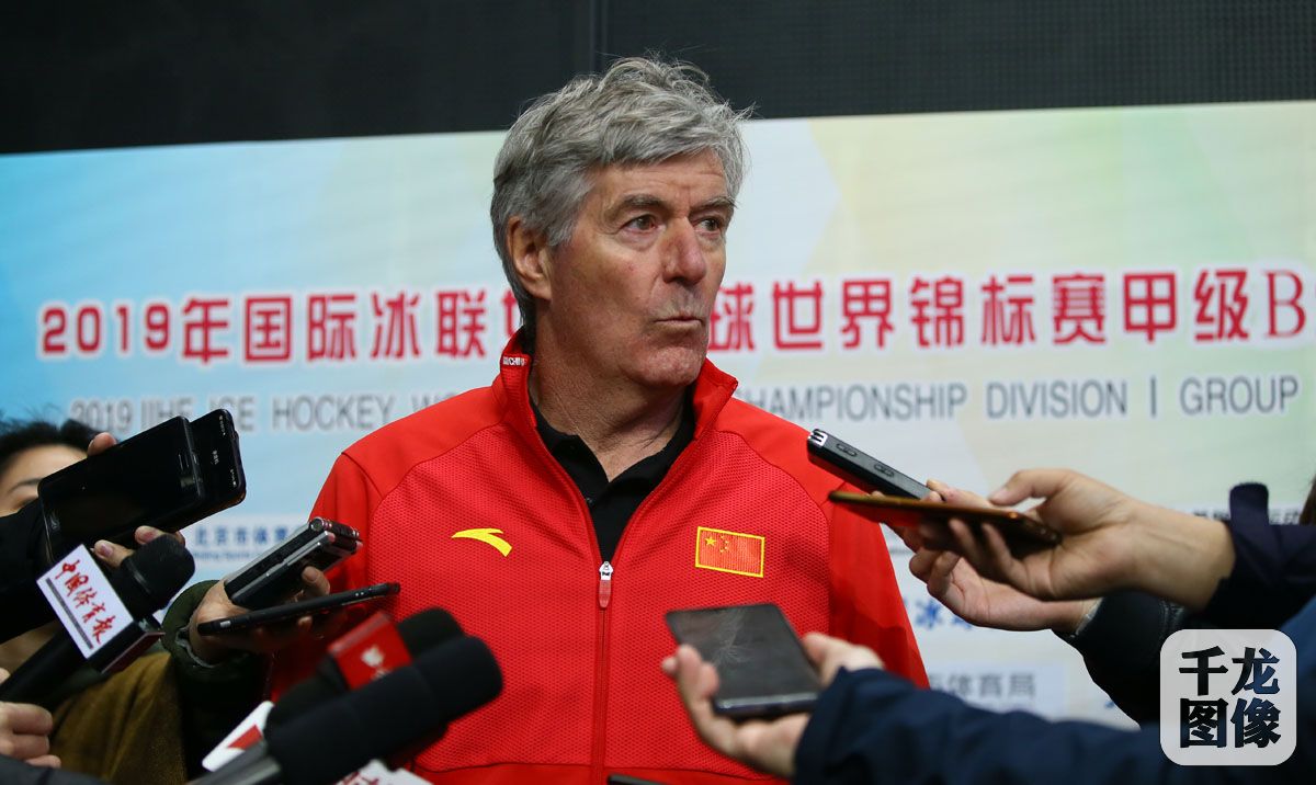 2019年国际冰联女子冰球世界锦标赛甲级B组比赛开赛之际,4月3日,中国女子冰球队和波兰女子冰球队在首钢冰球馆进行了一场友谊赛,中国队凭借第一局管莹莹的进球,以1-0小胜对手。图为中国女子冰球队的主教练雅各布·克利克接受了记者采访。千龙网记者 戚连民摄
