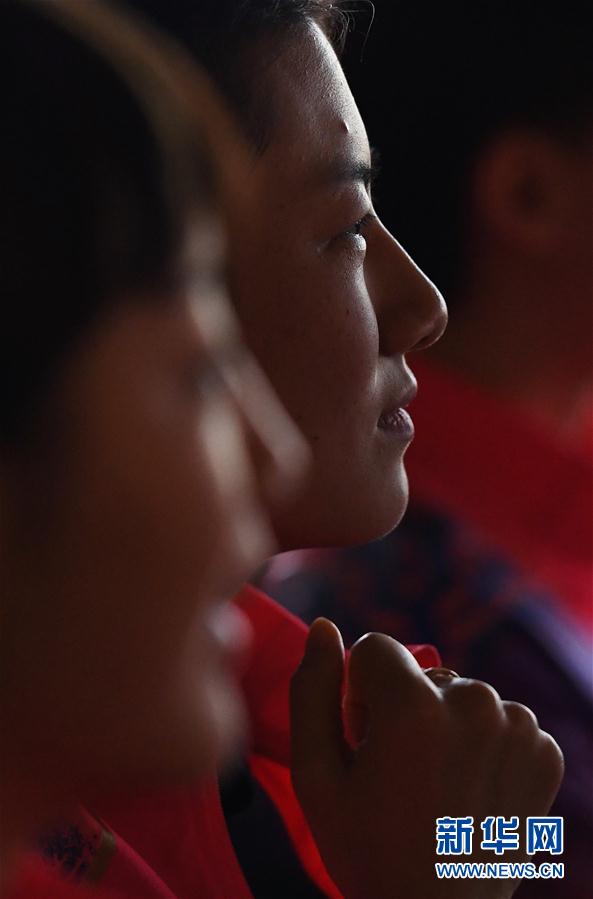 4月20日,丁宁(中)、陈梦在抽签仪式上。 当日,2019年世界乒乓球锦标赛单项赛举行单打抽签仪式。 新华社记者陶希夷摄