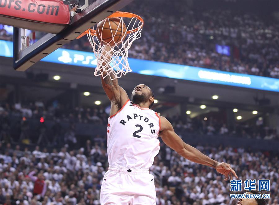 4月29日,猛龙队球员伦纳德在比赛中扣篮。 当日,在2018-2019赛季NBA季后赛东部半决赛第二场比赛中,费城76人队客场以94比89战胜多伦多猛龙队,总比分战成1比1平。 新华社/美联