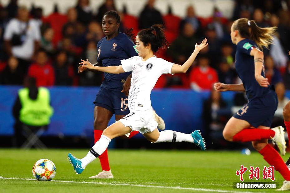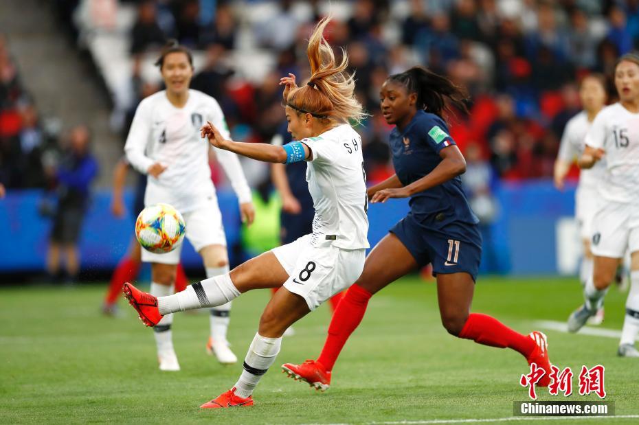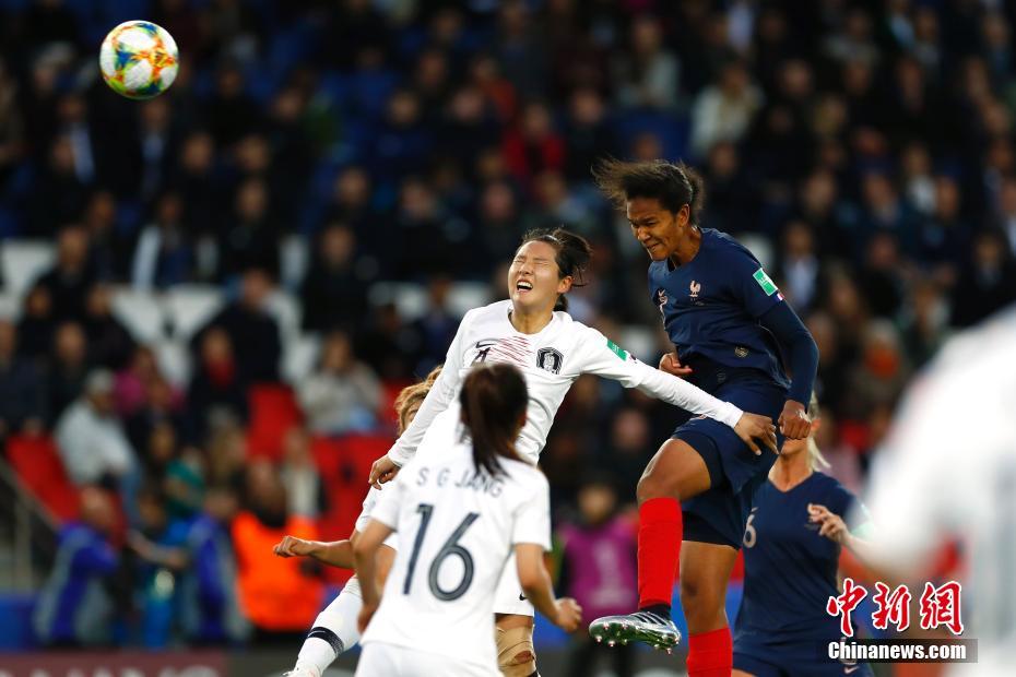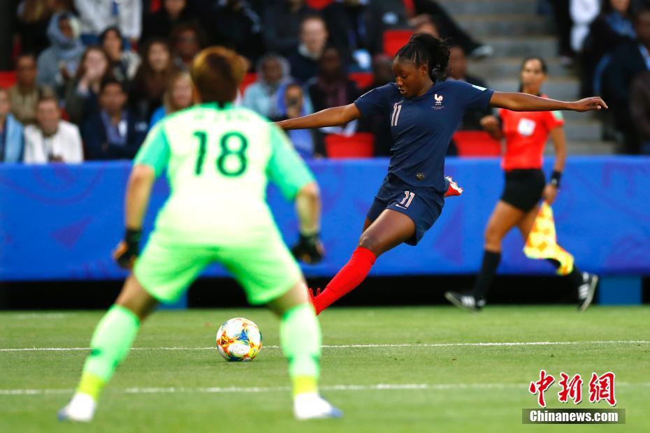 当地时间6月7日,在巴黎进行的2019年法国女足世界杯揭幕战中,法国队(蓝)以4:0战胜韩国队。图为法国队迪亚尼进攻。中新社记者 富田 摄