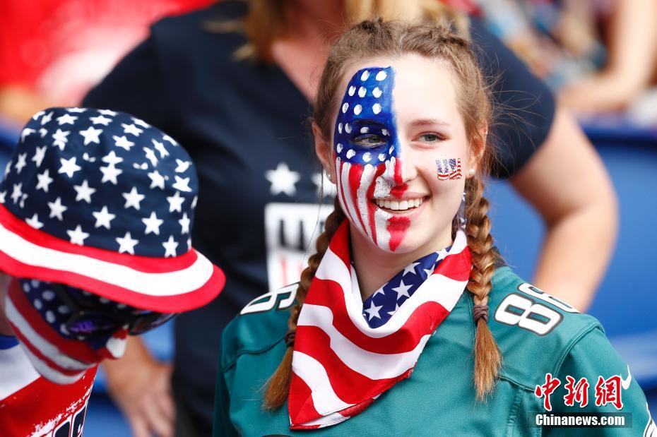 当地时间6月16日,美国队球迷到场观战。当日,在法国巴黎举行的2019年国际足联女足世界杯F组小组赛中,美国队以3比0战胜智利队。 中新社记者 富田 摄