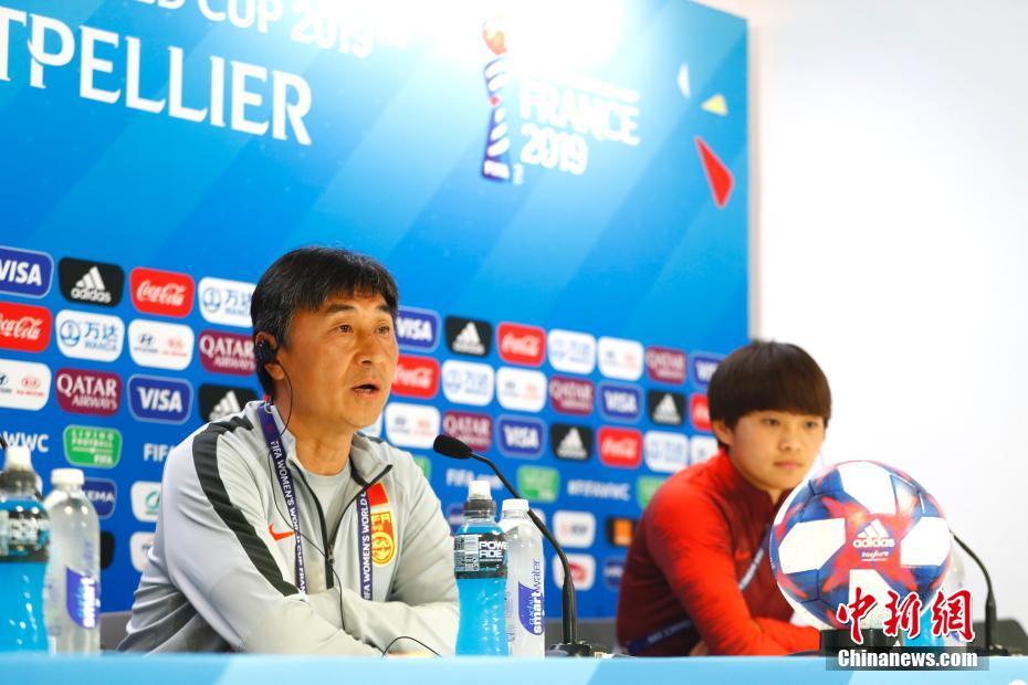当地时间6月24日,中国女足主教练贾秀全(左)及球员王霜出席赛前发布会并回答记者提问。25日,中国队将在2019年国际足联女足世界杯1/8决赛中,对阵意大利队。中新社记者 富田 摄