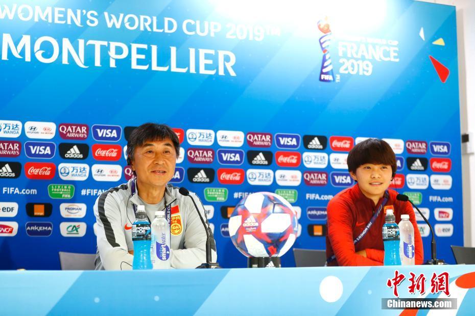 当地时间6月24日,中国女足主教练贾秀全(左)及球员王霜出席赛前发布会并回答记者提问。25日,中国队将在2019年国际足联女足世界杯1/8决赛中,对阵意大利队。中新社记者 富田 摄
