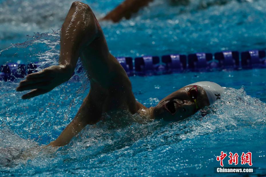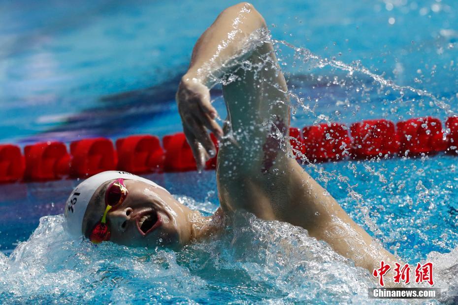 7月24日,孙杨在比赛中。当日,在韩国光州举行的2019国际泳联世界游泳锦标赛男子800米自由泳决赛中,中国选手孙杨以7分45秒01的成绩获得第六名。中新社记者 韩海丹 摄