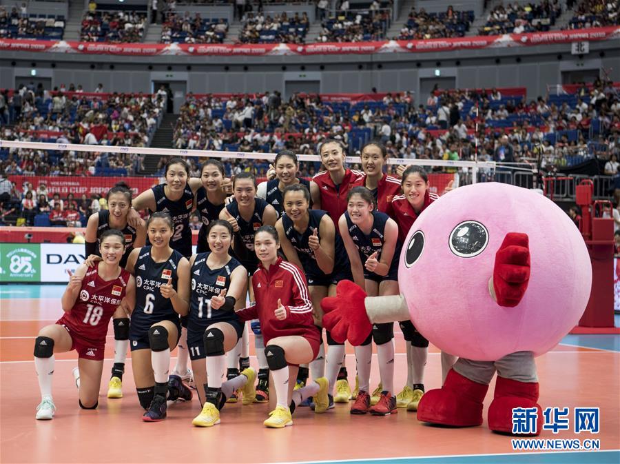 9月16日,中国队球员在比赛后合影。 当日,在日本横滨举行的2019年女排世界杯赛第一阶段A组循环赛比赛中,中国队以3比0战胜俄罗斯队。 新华社记者朱炜摄