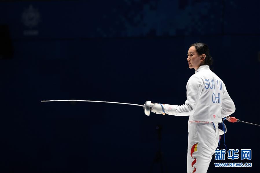 10月19日,中国选手孙一文在比赛中。当日,在武汉举行的第七届世界军人运动会女子重剑个人赛决赛中,中国选手孙一文以11比10战胜罗马尼亚选手安娜,获得冠军。 新华社记者 王建威 摄