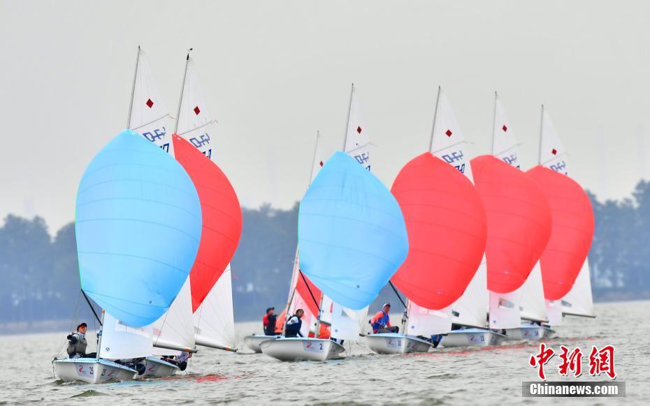 10月22日,第七届世界军人运动会帆船项目在武汉市圆满收官。经过最后3轮的激烈角逐,巴西队获得男女混合470级比赛冠军,波兰队获得女子470级冠军。图为比赛现场。中新社记者 安源 摄