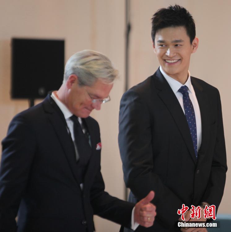 当地时间11月15日,中国游泳运动员孙杨(右)现身瑞士蒙特勒,出席国际体育仲裁法庭(CAS)就世界反兴奋剂机构(WADA)诉孙杨和国际泳联案举行的公开听证会。坚决要求国际体育仲裁法庭公开审理此案的孙杨说,他想一五一十把事实讲清楚,证明给全世界“自己合理合法合规”,让仲裁法庭还一个清白。中新社记者 德永健 摄