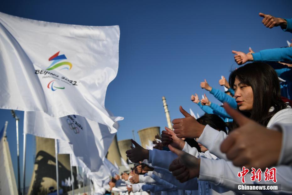 图为现场的志愿者代表集体竖起大拇指。中新社记者 崔楠 摄