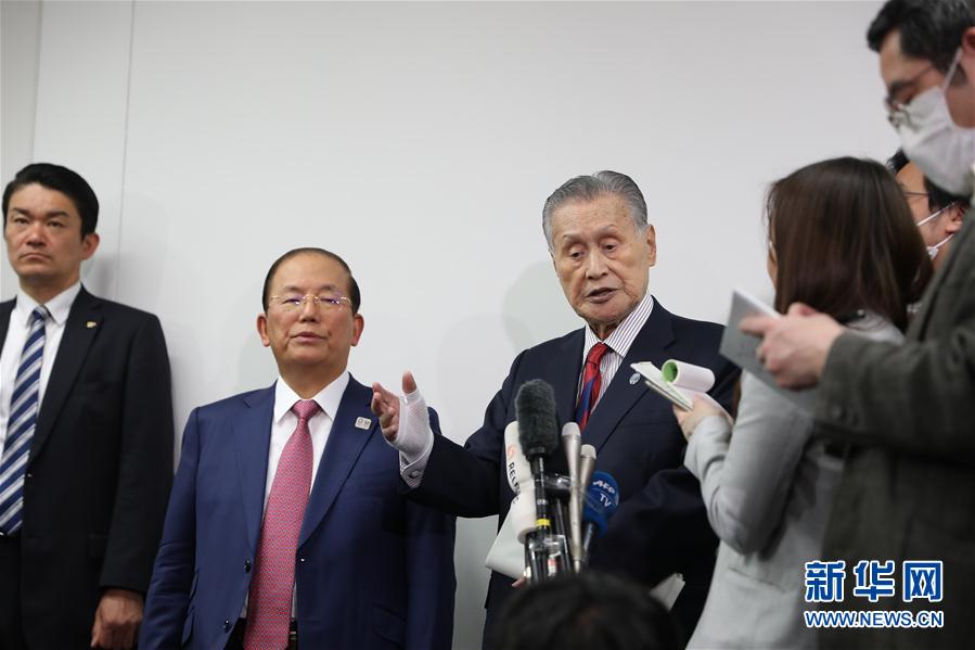 3月4日,东京奥组委主席森喜朗(左三)回答记者提问。 当日,东京奥组委主席森喜朗与东京奥组委首席执行官武藤敏郎在结束与国际奥委会执委会的电视会议后,在东京奥组委总部会见记者。森喜朗表示,东京奥组委当天晚上与国际奥委会执委会的电视会议中,没有提到取消或者推迟奥运会的事情,他再次重申奥运会将在7月24日准时开幕。 新华社记者杜潇逸摄
