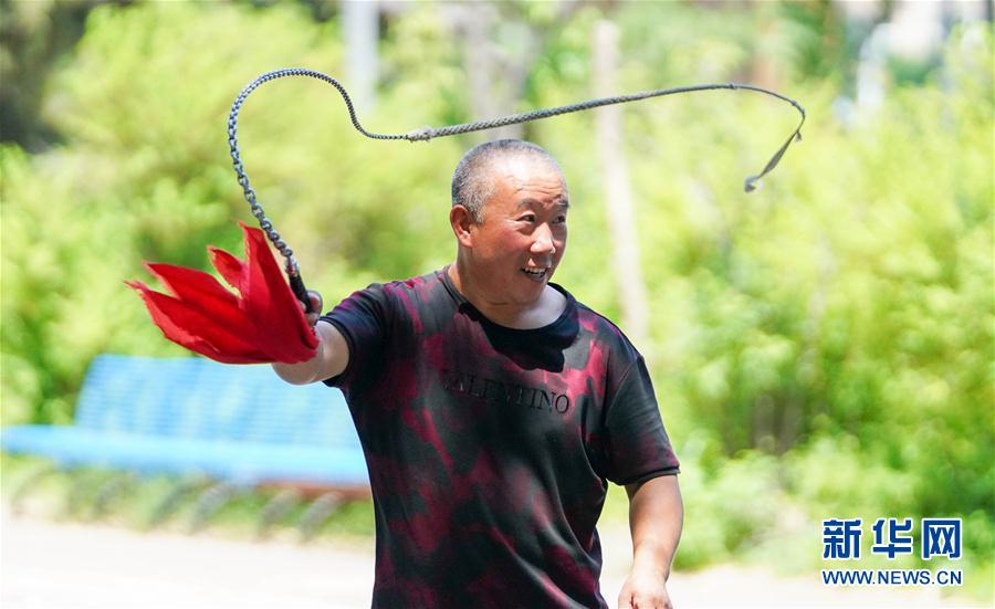在长春市南湖公园,市民通过甩健身鞭、抖空竹等多种方式锻炼身体,保持健康的身心状态。随着长春市“拆围透绿”“补植增绿”工程的实施推进,城市里的公园为市民提供了更多的健身空间。 图为6月17日,市民在长春市南湖公园内甩健身鞭锻炼身体。 新华社发(颜麟蕴摄)