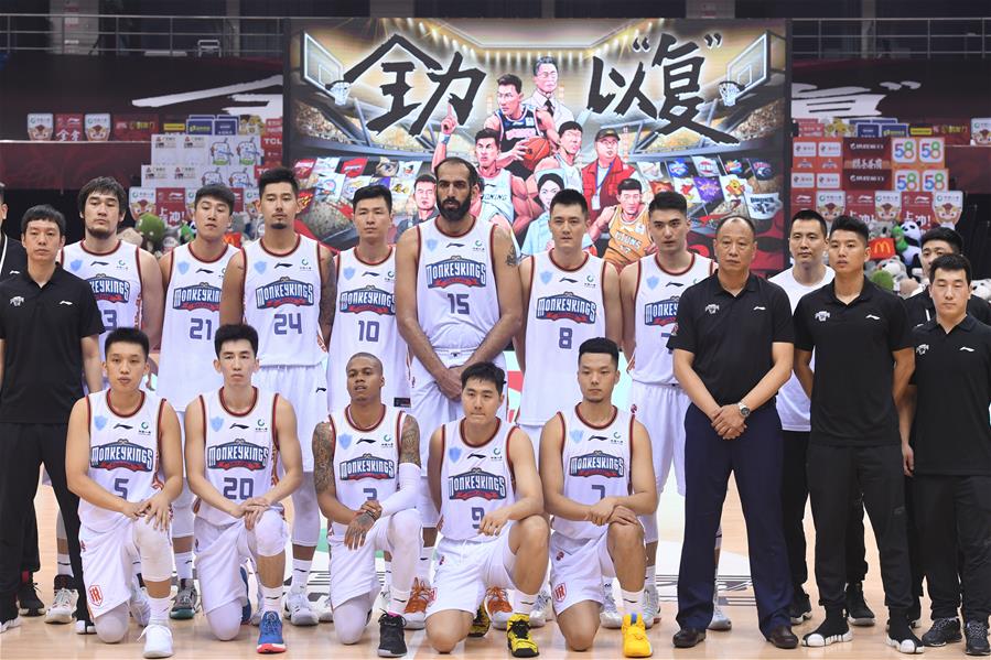 6月20日,球员和现场工作人员在“致敬抗疫英雄”纪念仪式上。 当日,2019-2020赛季中国男子篮球职业联赛(CBA)复赛第一阶段青岛赛区比赛拉开战幕。在青岛国信体育馆举行的首场比赛前,中国篮协举行了“致敬抗疫英雄”纪念、默哀仪式。 新华社记者 李紫恒 摄