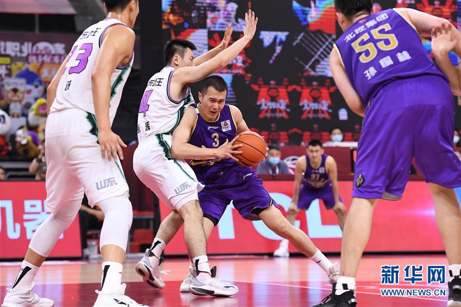 6月23日,北京控股队球员张帆(左三)在比赛中带球进攻。 当日,在广东东莞进行的2019-2020赛季中国男子篮球职业联赛(CBA)复赛第一阶段比赛中,北京控股队以103比94战胜山东西王队。 新华社记者 梁旭 摄