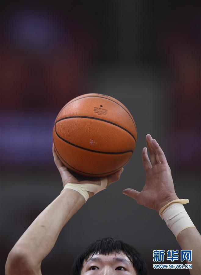6月27日,新疆伊力特队球员周琦在比赛中投篮。 当日,在山东青岛举行的2019-2020赛季中国男子篮球职业联赛(CBA)复赛第一阶段比赛中,新疆伊力特队以102比82战胜青岛国信双星队。 新华社记者李紫恒摄