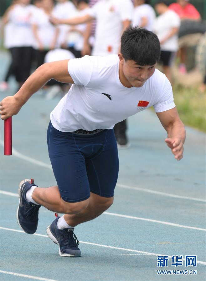 6月29日,吉林省摔跤队队员苏雅拉图在男子100米接力比赛中。 当日,吉林省体育局举行夏季“体能大比武”,吉林省举重、摔跤、柔道三支运动队的100余名运动员参加了100米接力、翻轮胎等项目的测试,全力备战2021年全运会。 新华社记者林宏摄