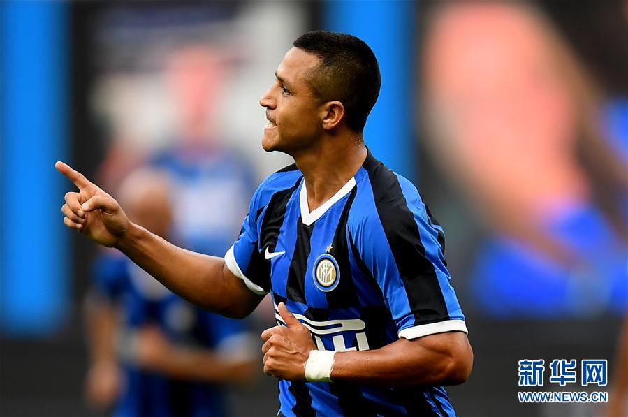 7月1日,国际米兰队球员桑切斯在进球后庆祝。 当日,在2019-2020赛季意大利足球甲级联赛第29轮比赛中,国际米兰队主场以6比0战胜布雷西亚队。 新华社发