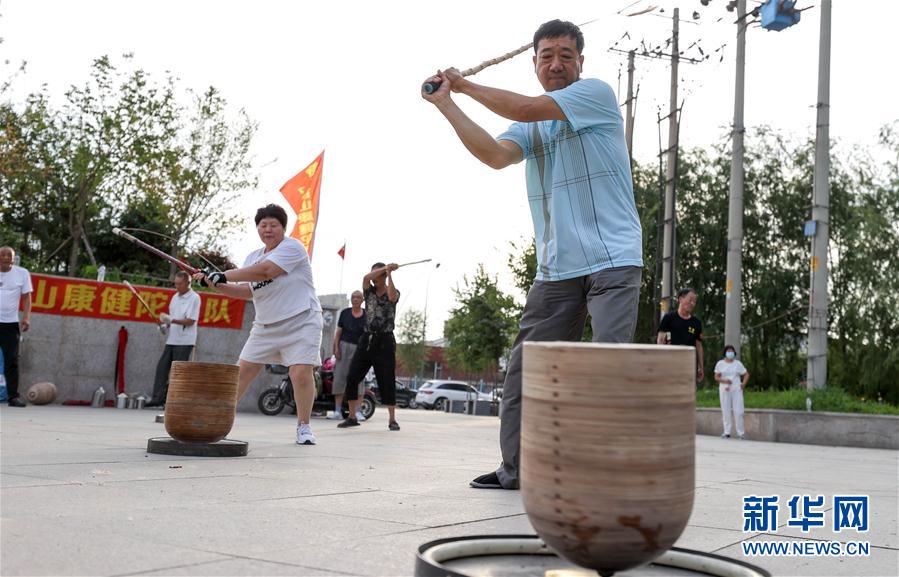 在长春市首山社区旁的一处广场,宽城区首山康健陀螺队队长孙树有(右)在抽陀螺(7月13日摄)。 每天下午,在长春市宽城区团山街道首山社区,宽城区首山康健陀螺队的队员们都会来到社区旁的一处广场玩陀螺。 队长孙树有和队友们将废旧木材和金属“变废为宝”,自制了许多不同样式的陀螺,小到5公斤,大到65公斤。 目前,这支社区陀螺队共有队员40余名,年龄最小的58岁,最大的80多岁,他们都将抽陀螺作为自己日常锻炼身体的方式。 “抽陀螺不仅可以增强肩颈和手臂力量,还能练到全身肌肉,玩起来特别过瘾。”孙树有说。 新华社发(颜麟蕴 摄)