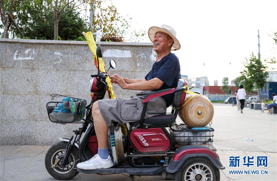 在长春市首山社区旁的一处广场,宽城区首山康健陀螺队的一名队员准备用电动车载陀螺回家(7月13日摄)。每天下午,在长春市宽城区团山街道首山社区,宽城区首山康健陀螺队的队员们都会来到社区旁的一处广场玩陀螺。 队长孙树有和队友们将废旧木材和金属“变废为宝”,自制了许多不同样式的陀螺,小到5公斤,大到65公斤。 目前,这支社区陀螺队共有队员40余名,年龄最小的58岁,最大的80多岁,他们都将抽陀螺作为自己日常锻炼身体的方式。 “抽陀螺不仅可以增强肩颈和手臂力量,还能练到全身肌肉,玩起来特别过瘾。”孙树有说。 新华社发(颜麟蕴 摄)