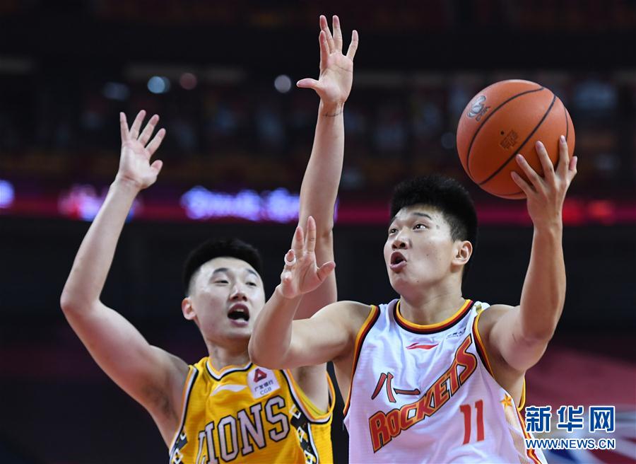 7月14日,八一南昌队球员雷蒙(右)在比赛中进攻。 当日,在山东青岛举行的2019-2020赛季中国男子篮球职业联赛(CBA)复赛第二阶段(红岛赛区)比赛中,八一南昌队以105比113不敌浙江广厦控股队。 新华社记者 朱峥 摄